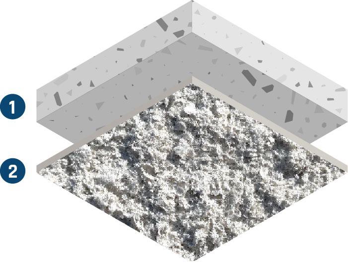 Een fijn gespoten akoestische afwerking met een subtiele structuur.